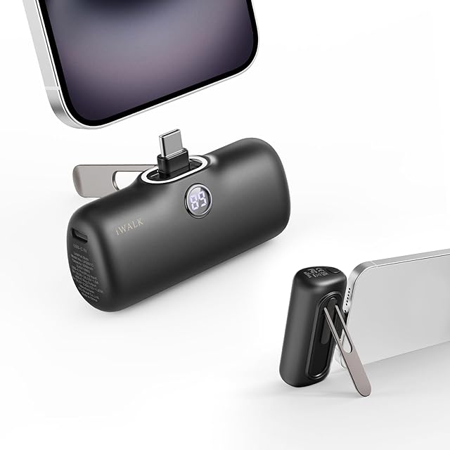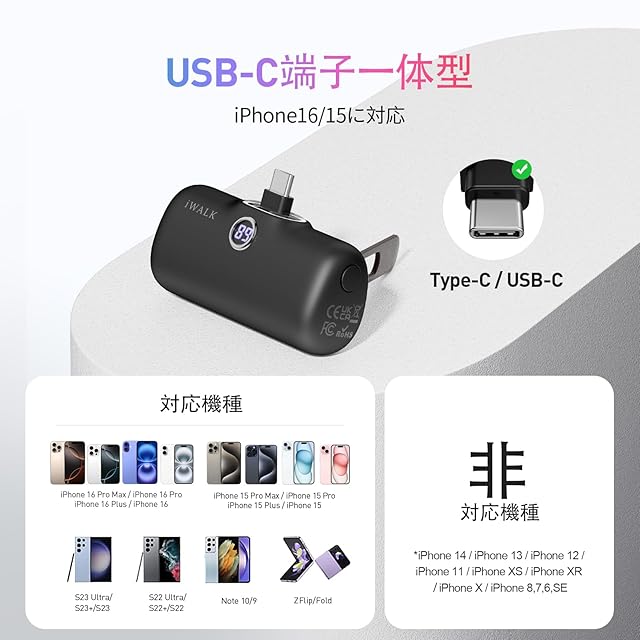 商品名:iWALK モバイルバッテリー タイプc スタンド付き【PD 20W急速充電・5000mAh容量・USB Type C 端子一体型】 軽量 小型 モバイル充電器 コードレス コンパクト携帯充電器 かわいい もばじゅう デジタルディスプレイ搭載 機内持ち込み可能 iPhone 16 16 Pro Max 15 iPad AirPods アンドロイド 充電対応 PSE認証済 ブラック