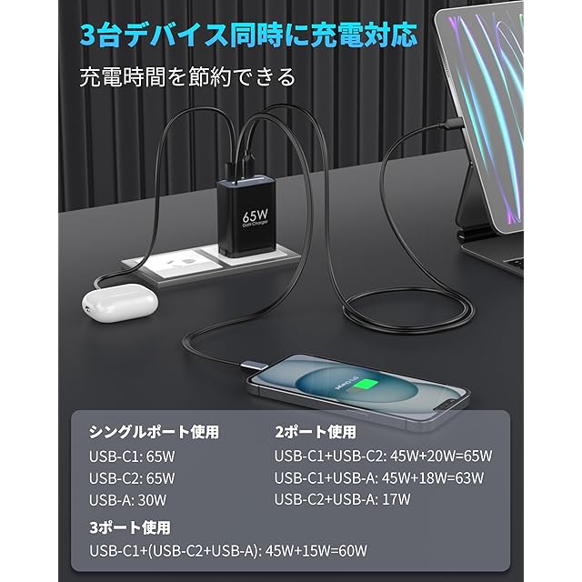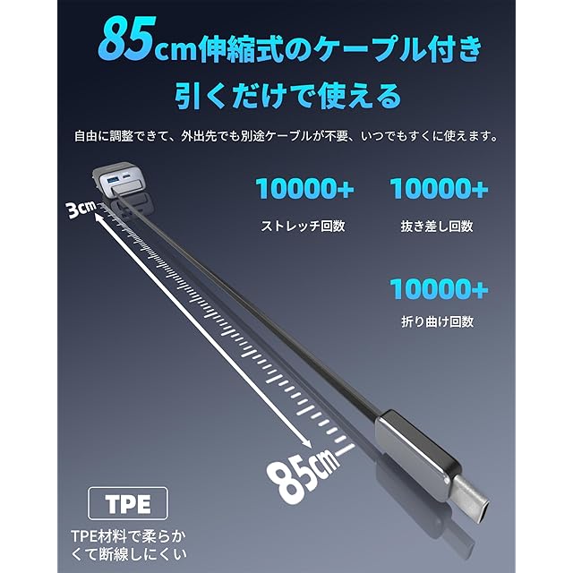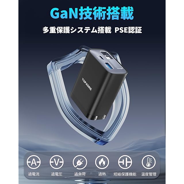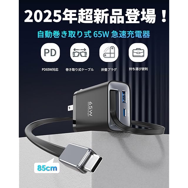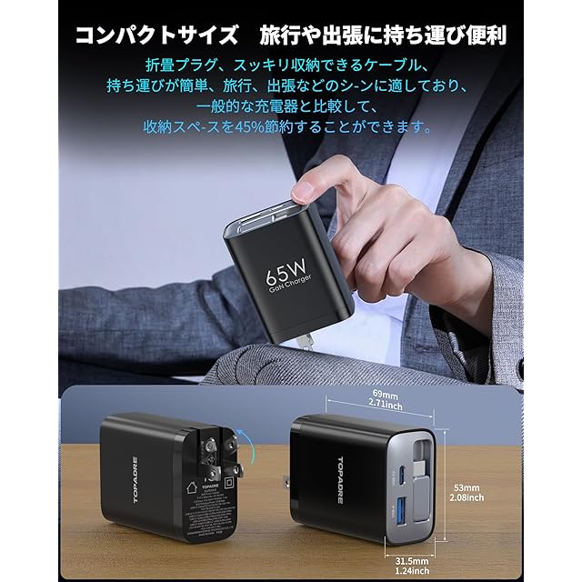 商品名:【自動巻き取り式】TOPADRE 65w GaN 急速充電器 Type-C PD充電器【伸縮式85㎝ケーブル付属/折畳み式/PSE技術基準適合/GaN新技術】タイプc 充電器 PD3.0/QC4.0/PPS等規格対応 MacBook/ノートPC/iPad/iPhone/Androidなどに対応 旅行や出張 黒色
