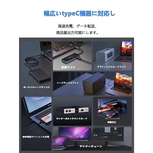 対応機種:幅広いtypeC機器に急速充電、高速データ転送、高品質出力を提供します。