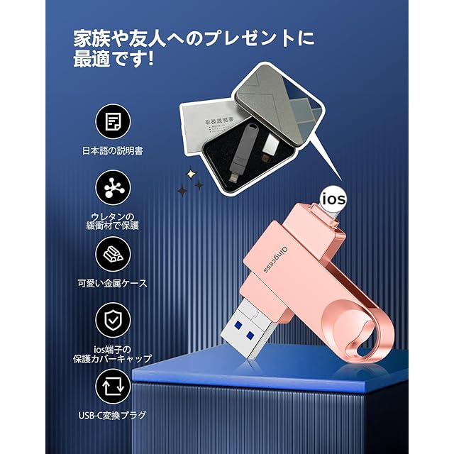 商品名:【128GB】Phone対応USBメモリ [アプリ不要 アルバム直保存] 外付けストレージ スマホ容量不足解消/写真保存バックアップ高速転送/耐久設計 Type-C対応 Pad/Android/PC兼用フラッシュUSBメモリー