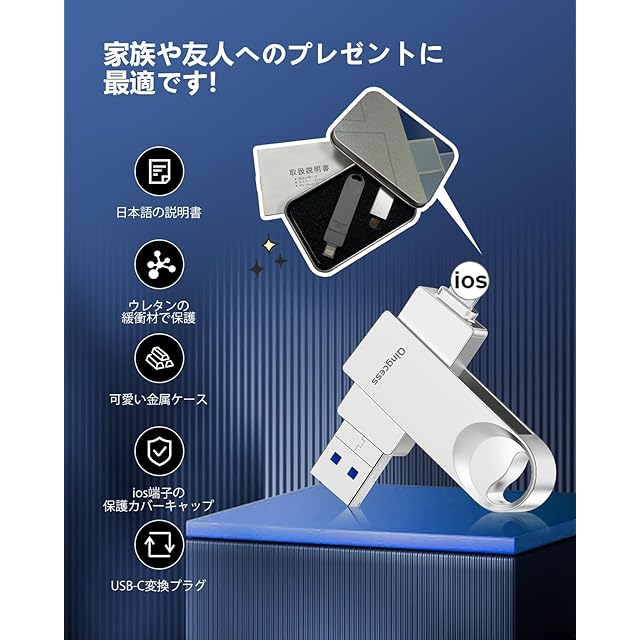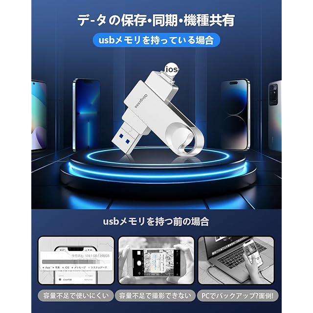 商品名:【256GB】Phone対応USBメモリ [アプリ不要 アルバム直保存] 外付けストレージ スマホ容量不足解消/写真保存バックアップ高速転送/耐久設計 Type-C対応 Pad/Android/PC兼用フラッシュUSBメモリー