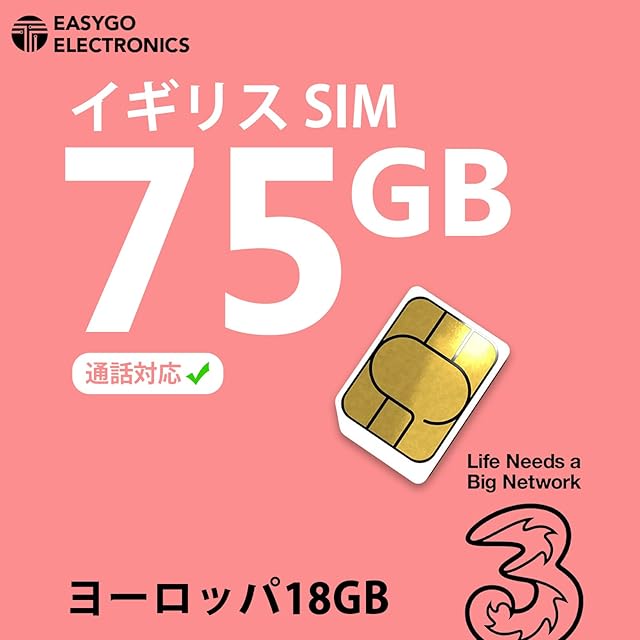 商品名:Three イギリス SIM ヨーロッパSIM フランス プリペイドSIMカードプリペイドSIM イギリス含む71ヶ国対応 30日 イギリス75GB,ヨーロッパ18GB (75GB30日間)