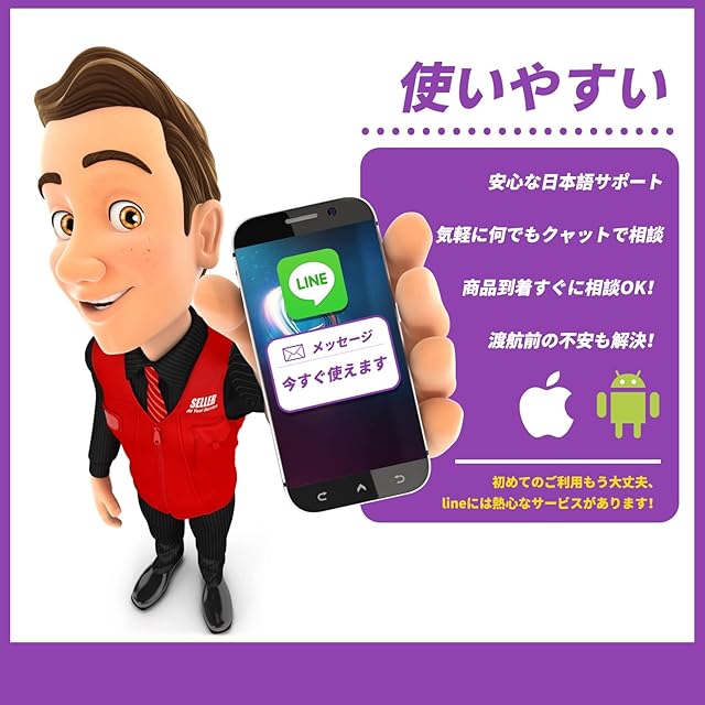 ●周波数のあったSIMフリー携帯のみご利用可能です(タブレット端末やモバイルルーターではお使いいただけません)。現地でSIMを装着しデータ通信の設定をして頂くだけで利用可能。日本語独自マニュアルも付属いたします。※ほとんどの日本国内のSIMフリー端末でご利用になれますがアメリカ・プエルトリコの場合は周波数にご注意ください。