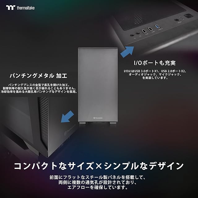 商品名:Thermaltake S100 TG 強化ガラス ミニタワーPCケース スイングドアパネル採用 CA-1Q9-00S1WN-00 CS7885 ブラック