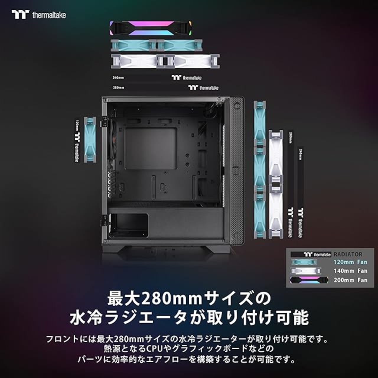 最大280mmサイズの水冷ラジエータが取り付け可能