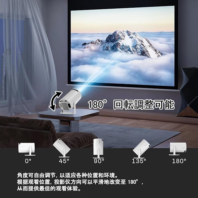 【4K/1080P HDムービープロジェクター&350ANSIをサポート】このHY300Proスマートポータブルプロジェクターは、旧型のHY300プロジェクターと比較して、輝度が約2倍の350ANSIに向上し、サポートされる解像度が増加しました。1080Pの高解像度と12000:1の高ダイナミックコントラスト比により、リアルな色彩を忠実に再現します。