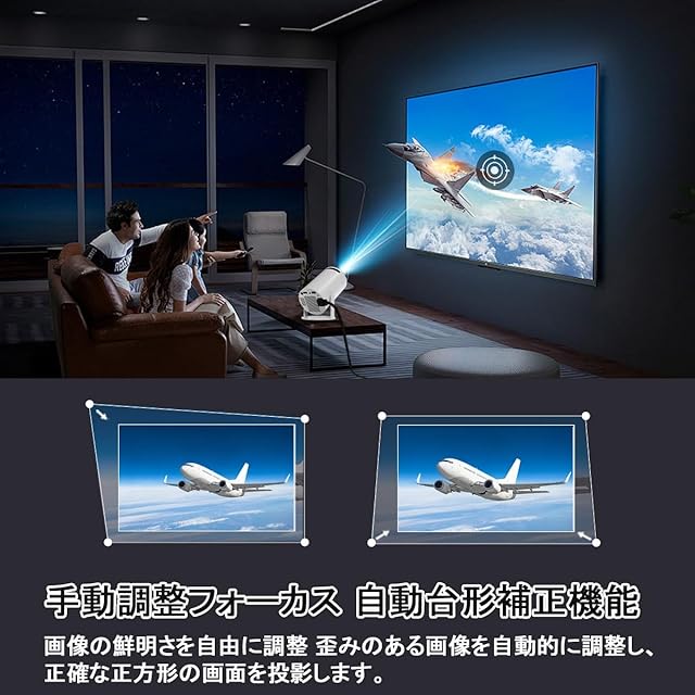 【自動台形補正&短焦点】 プロジェクター 家庭用、プロジェクターのサイズはこのビデオプロジェクターは自動台形補正技術を搭載し、マニュアルフォーカスで簡単かつ迅速に鮮明な画像を得るために調整することができます。さらに、この短焦点プロジェクターは最新の0.9:1投影比技術を採用し、0.5m~5mの距離で20~200インチの投影サイズを提供します。注:上下45度の台形補正に対応、左右の台形補正には非対応