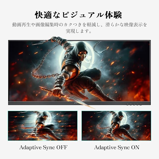 IPSパネル:このモニターは、鮮やかな色彩と細部までくっきりと表示できる2560x1080の高解像度IPSパネルを採用しています。99%のsRGBカバー率により、写真や動画の編集にも最適です。HDR機能により、明暗のコントラストを正確に表現し、より臨場感のある映像を楽しめます。
