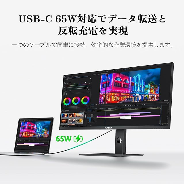 INNOCN 29インチ 横長ディスプレイモニター ウルトラワイトモニター 大画面 WFHD ワイドモニター 2560x1080@100Hz 21:9 Type-C(65W給電) ips(非光沢) データ扱い処理・動画編集 29C1F-D