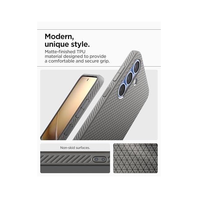 【高耐久のマット素材】マットな仕上げとジオメトリックなパターンが魅力的なリキッド・エア。装脱着が簡単になる柔らかいTPU(熱可塑性ポリウレタン)素材に衝撃を吸収するエアクッションを適用し、極めた保護力でデバイスを守ります