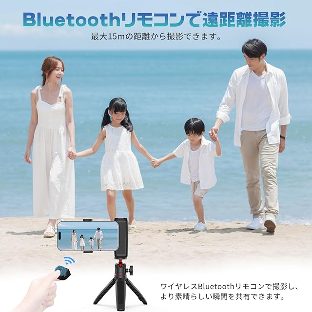 【充電可能なBluetoothリモコン】Bluetoothリモコンはスマホに接続可能でiPhoneやAndroidスマホに適用します。シャッターを押すだけで最遠15mまで操作可能、Bluetoothリモコンで操作するのは撮影時の手振れを避けるだけでなく、他人からの協力なしで撮影を実現可能なので、とても便利です。(ご注意:Bluetoothに接続できない場合は、ご連絡お願い致します。)