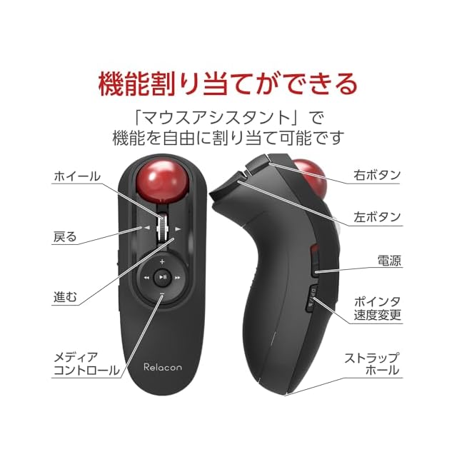 商品名:エレコム マウス ワイヤレス (レシーバー付属) トラックボール ハンディタイプ Relacon メディアコントロールボタン搭載 静音 ブラック M-RT1DRBK
