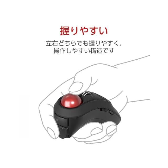 左右どちらでも握りやすく、操作しやすいハンディータイプ。握りながらも操作しやすいよう左右ボタンやメディアコントロールボタンを適した位置に配置しています。