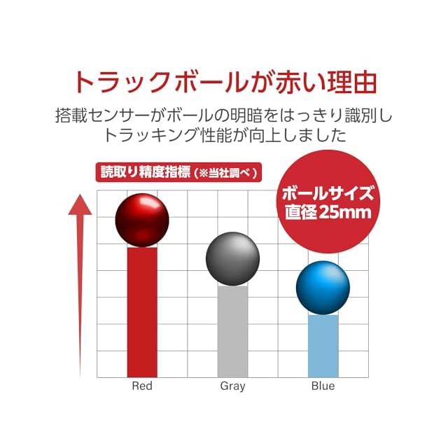 トラックボールの滑らかなクリアコーティング面に適した反射型レンズ搭載光学式センサーを採用しています。さらにボールの色やコーティング層の厚み、シルバーパウダーの量と粒子サイズなどの徹底的な最適化により、究極のポインター追従性を実現しました。