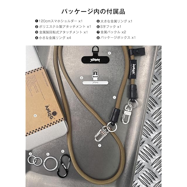 [VPEGGGP] APEGG スマホショルダー 120cm スマホストラップ 携帯ストラップ ショルダー 肩掛け 首掛け 斜めがけ iPhone 全機種対応 アウトドア ネックストラップ ストラップホルダー ストラップ 8mm_Martini Olive | TREND DESIGN 家電専門店
