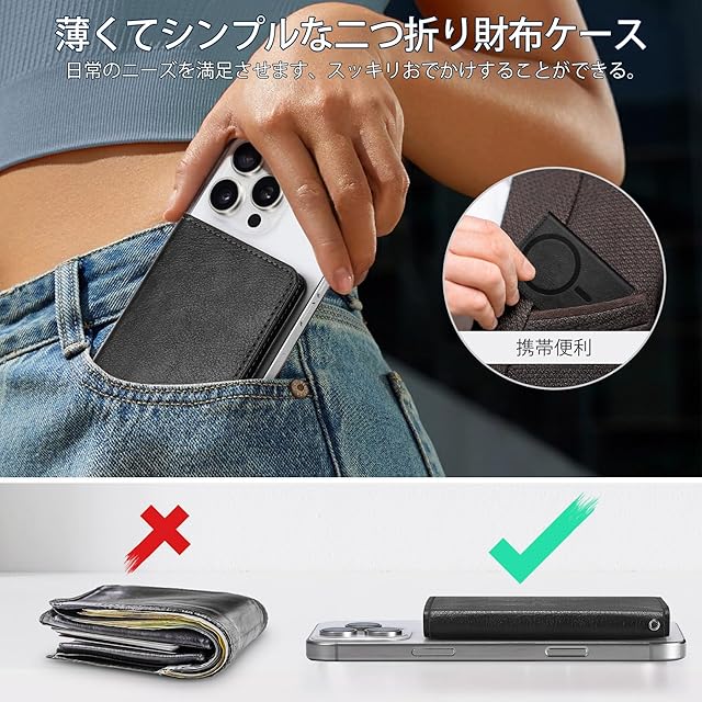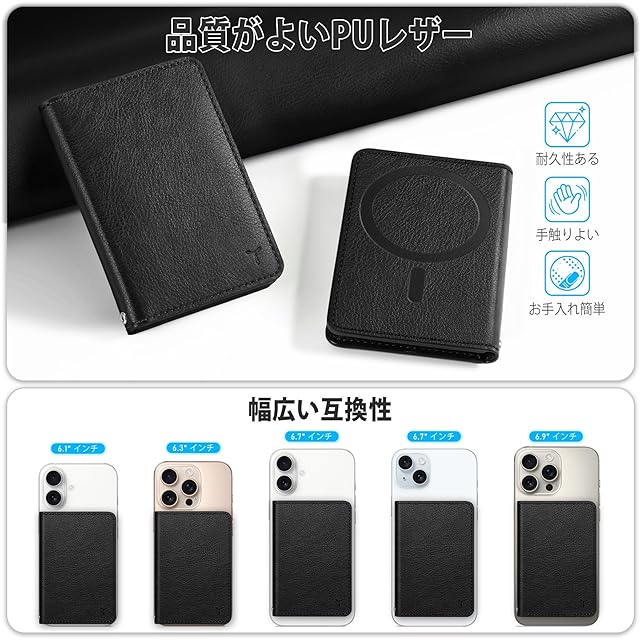 【幅広い互換性】このスマホカードケースはiPhone16/16 Plus/16 Pro/16 Pro Max/iPhone15/15 Plus/15 Pro/15 Pro Max/iPhone 14/14 Plus/14 Pro/14 Pro Max/iPhone13/13 Pro/13 Pro Max/iPhone12/12 Pro/iPhone 12 Pro Maxに対応します。ご注意:本商品はただ磁力吸着機能搭載のスマホやスマホケースだけに対応できます、(iPhone11/11Pro/11 Pro Max/7/8/SE2/SE3/XS Max/Xs/XRに対応しません)。ご購入前に、対応機種をしっかりとチェックしてください。