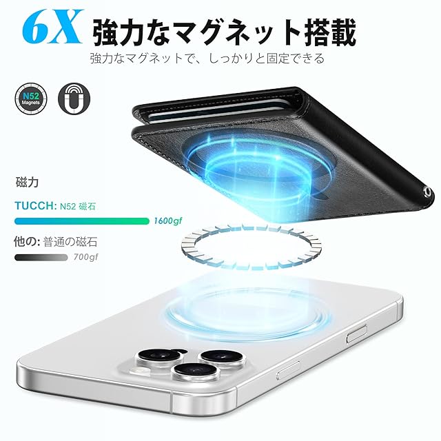 商品名:[TUCCH] スマホカードケース 磁気吸着 6枚カード収納 [RFIDブロッキング] PU合皮 磁気ウォレットケース iPhone 16/16Plus/16Pro/16Pro Max/15/14/13/12シリーズ対応 グラファイト