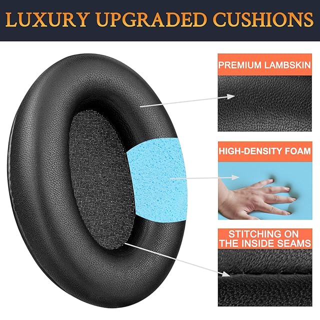 SOULWIT シープスキン イヤーパッド Sony WH-1000XM3 (WH1000XM3) ヘッドセット 用 交換パッド ノイズアイソレーション イヤークッション 厚手 ヘッドホン パッド 明るいブラック | TREND DESIGN 家電専門店
