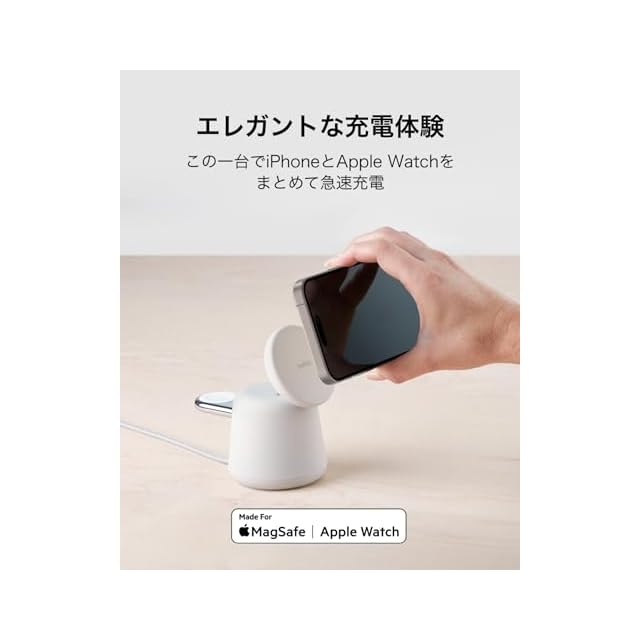 商品名:Belkin [Apple公認] 2 in 1 MagSafe充電器 【Apple取扱製品】最大15W高速充電 ワイヤレス充電器 MagSafe公式認証 iPhone 16/15/14/13/12 Apple Watch 9/8/7/Ultra 高速充電対応 USB-Cケーブル付属(1.5m) AC電源アダプタの付属なし チャコール WIZ020btH36