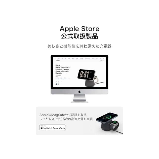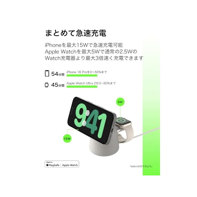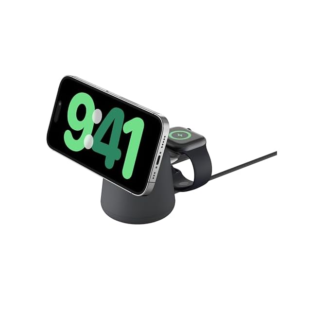Belkin [Apple公認] 2 in 1 MagSafe充電器 【Apple取扱製品】最大15W高速充電 ワイヤレス充電器 MagSafe公式認証 iPhone 16/15/14/13/12 Apple Watch 9/8/7/Ultra 高速充電対応 USB-Cケーブル付属(1.5m) AC電源アダプタの付属なし チャコール WIZ020btH36 | TREND DESIGN 家電専門店
