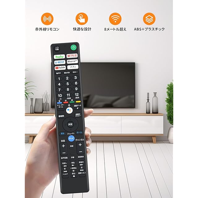 【操作簡単】よく使うテレビの基本機能を備え、操作しやすい大きめボタンを使用し、しかもボタンの上には分かりやすく文字を配布するため、目への負担を軽減し快適な操作を実現します。置いたままでも押しやすい安定感があり、つまんで操作、握って操作、置いたまま操作が出来ます。※機種によっては一部の機能が操作できない場合があります。