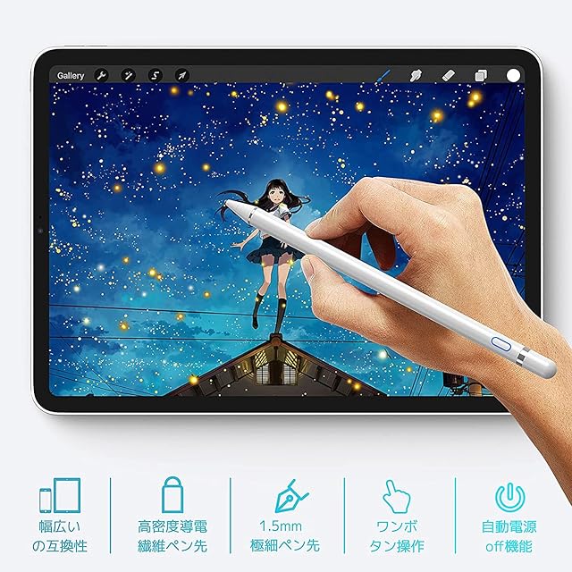 ボールペンのような書き味なので扱いやすいとともに、画面に傷が付きにくいです。スマートフォンやタブレットでイラストを描く方にも適しています。滑りがよく、まるで紙の上で絵の具を走らせているような感覚が楽しめるのが特徴。