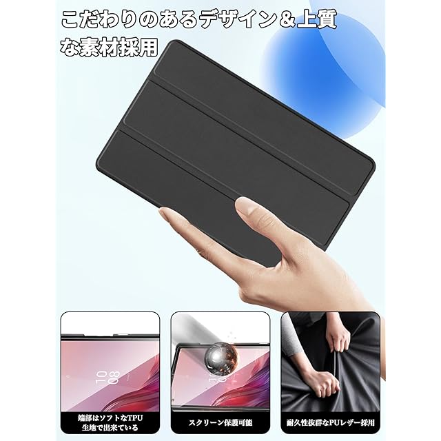 【上質PU素材採用】カバー表面は手触りが良く高級感のあふれる耐久性に優れた高級PUレザーで、バックケースは耐衝撃性の高く頑丈なTPU+PC素材を採用しており、裏地材質は液晶表面に優しいマイクロファイバーの仕上がりで、タブレット本体をやわらかく包み込みながら、不意による落下の衝撃から緩和できて、タブレットに最高の保護力を提供してくれます。