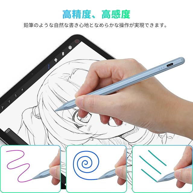 商品名:【2023年新登場 Type-C急速充電】 AiSFUL タッチペン 極細 超高感度 apple pencil スタイラスペン ペンシル 誤作動防止/自動オフ/磁気吸着機能対応 イラスト ゲーム 2018年以降iPad/iPad Pro/iPad air/iPad mini/iPad 第9世代/第10世代対応 USB充電式 (ブルー, ID716)