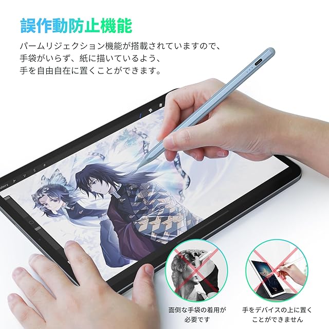 【パームリジェクション機能】AiSFUL ipad スタイラスペン にはパームリジェクション機能が搭載されており、使用する際に手を自由にデバイスの画面上に置くことができます。煩雑な設定は一切必要なく、タッチペンのトップボタンを押すだけで、メモやスケッチなどが簡単に作成できます。