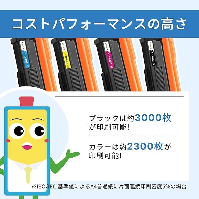 【印刷枚数】お得な大容量セット!ブラック( TN493BK )は約3,000枚が印刷可能、 カラー( TN493C TN493M TN493Y )は約2,300枚が印刷可能 *A4用紙に5%密度で印字した場合の参考値。