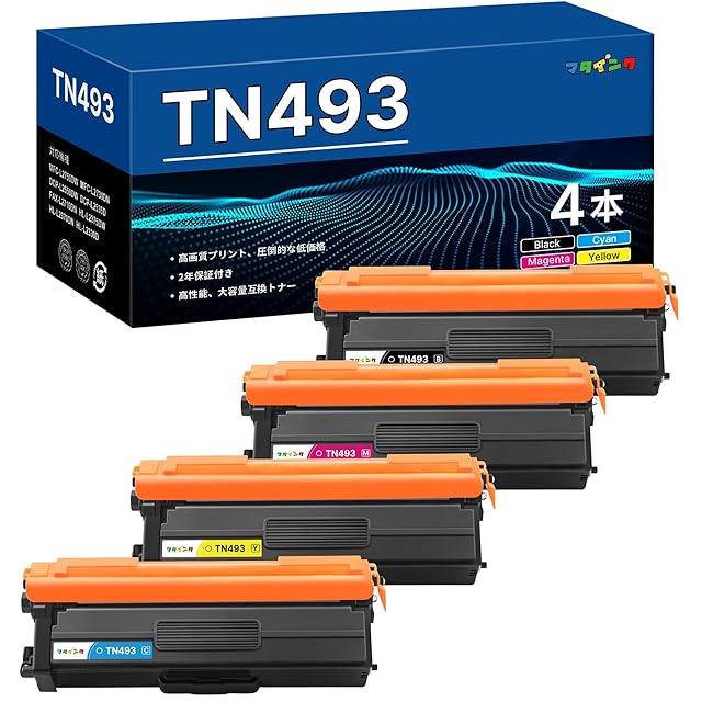 商品名:マタインク TN-493 互換トナーカートリッジ ブラザー用 TN493 トナー TN-491 TN491 の増量タイプ 4色セット 493 491 大容量タイプ HL-L8360CDW HL-L9310CDW MFC-L8610CDW MFC-L9570CDW プリンタートナー