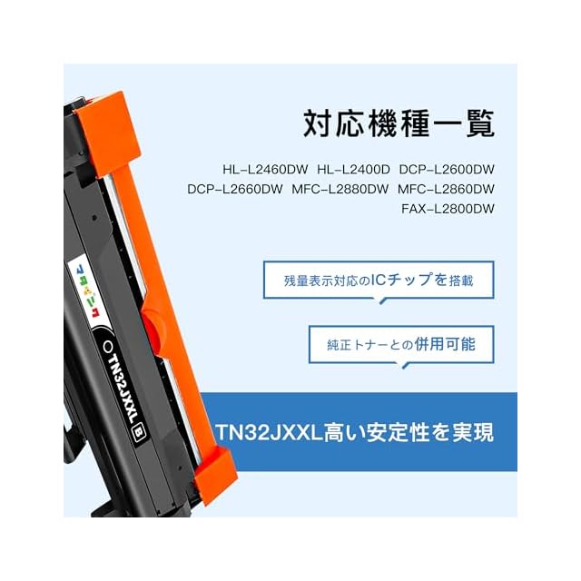 商品名:マタインク TN32JXXL ブラザー(Brother) 用 32JXXL 互換トナーカートリッジ ブラック 1本 タイプ 対応機種: HL-L2460DW HL-L2400D DCP-L2600DW DCP-L2660DW MFC-L2880DW MFC-L2860DW FAX-L2800DW
