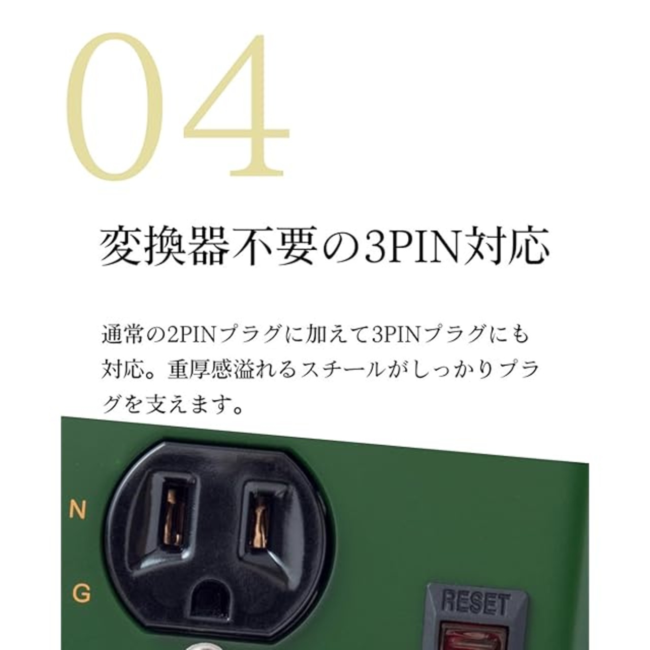 ✅【変換器不要の3ピンプラグ対応】オリーブカラーが映えるAC2個付き!