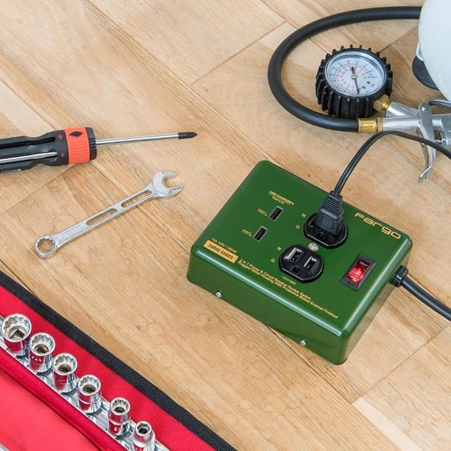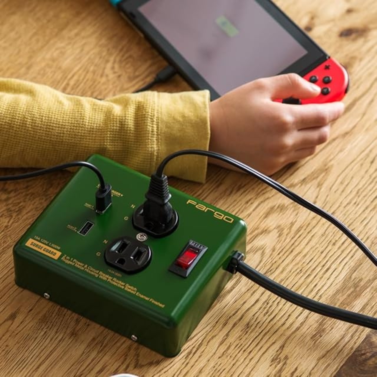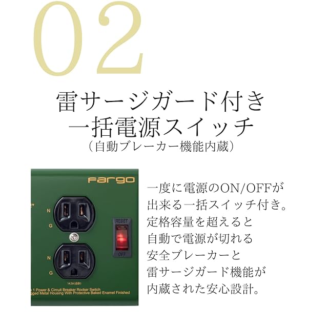 Fargo 延長コード USB 急速充電 スマホ アメリカン レトロ STEEL TAP オリーブ スチールタップ ファーゴ 電源タップ 鉄製 2個口 3ピン 雷サージ付 おしゃれ インテリア DIY ガレージ メタリック 一括スイッチ 1.8m | TREND DESIGN 家電専門店