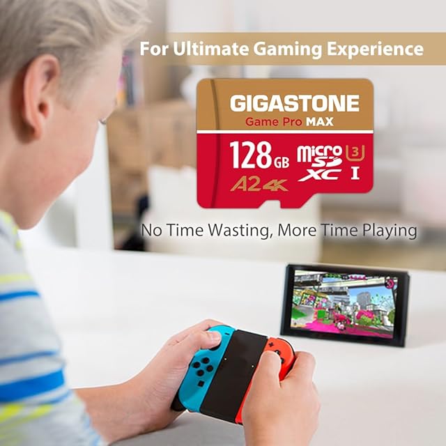【5年 】Gigastone マイクロSDカード 128GB Game Pro Max A2 V30 UHS-I U3 Class 10 120/80 MB/S 高速 Gopro アクションカメラ スポーツカメラ 4K Ultra HD 動画 SD変換アダプタ付き ミニ収納ケース付き Nintendo Switch 1動作確認済