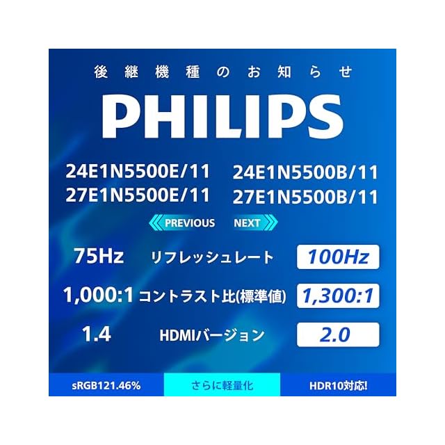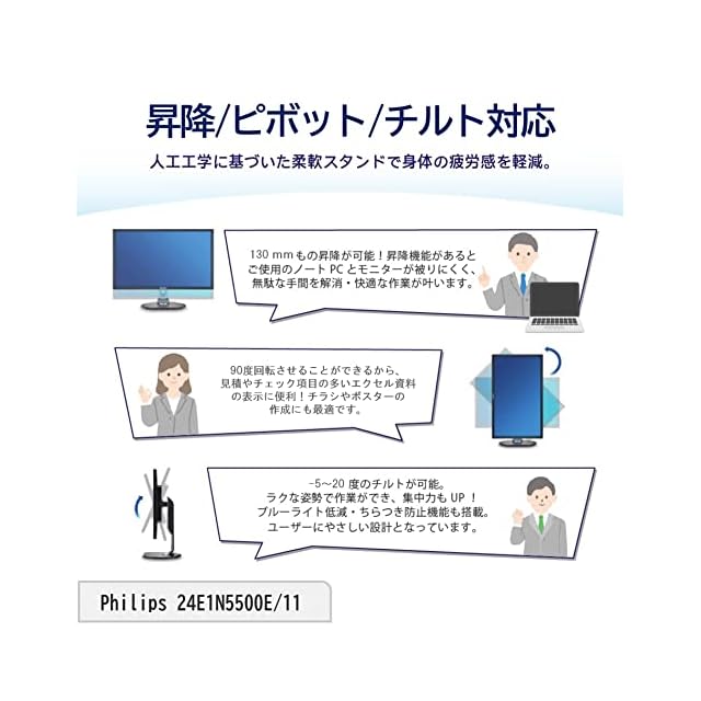 商品名:PHILIPS 液晶ディスプレイ PCモニター 24E1N5500E/11 (23.8インチ/5年/WQHD/IPS/HDMI,Display Port/高さ調整/チルト/ピボット/フレームレス/Adaptive Sync/ちらつき防止/ブルーライト軽減)
