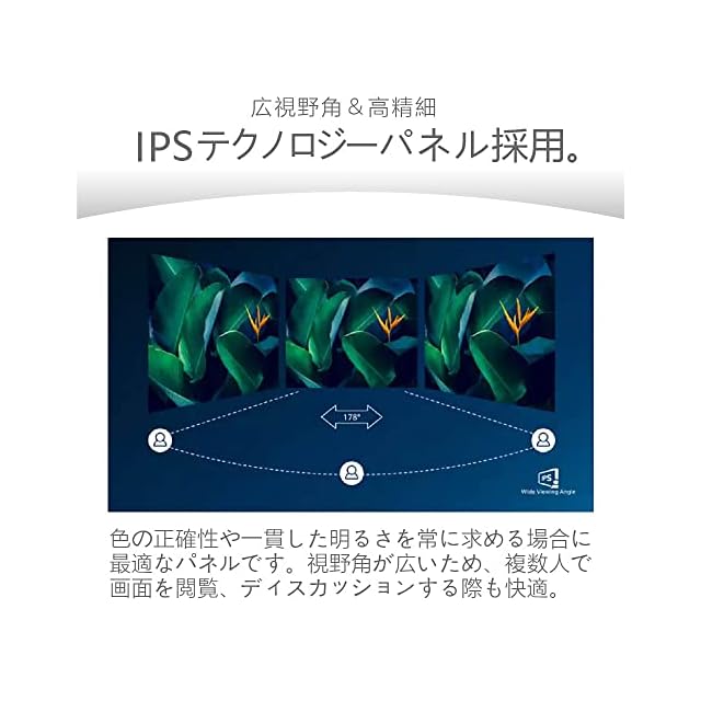 視野角 水平178°垂直178°/VESA100mmx100mm/Adaptive Sync/フリッカーフリー,ローブルーモード/チルト-5~20度/高さ調整可動域130mm/ピボット90度
