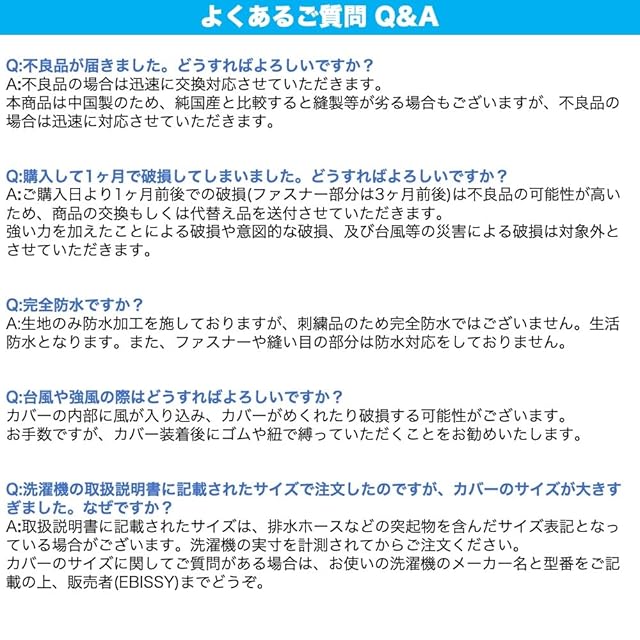 EBISSY 洗濯機カバー 屋外 防水 【 4面 すっぽり 厚手生地 】 シルバーコーティング 紫外線 対策 (ファスナー) (XXLサイズ:100×67×62) | TREND DESIGN 家電専門店
