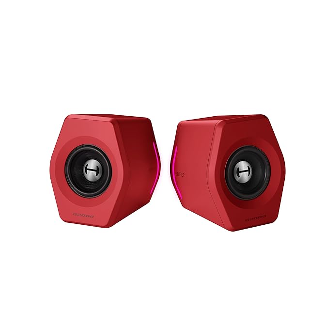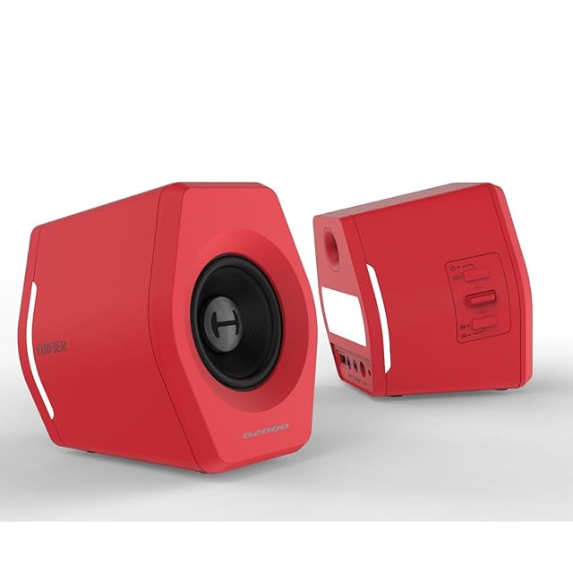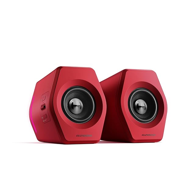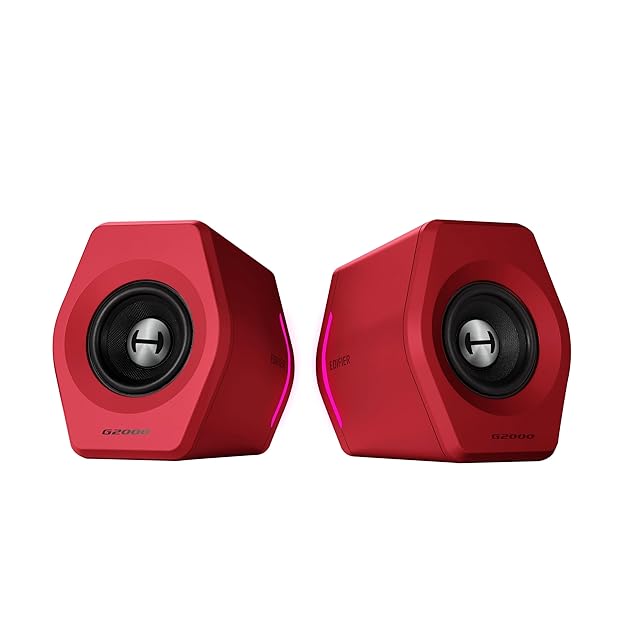 Edifier G2000 ゲーミング スピーカー PC パソコン PS5 Switch ゲームモニター用 Bluetooth/USB/3.5mm AUX 有線無線接続対応/ゲーム、音楽、映画モード対応/32W Hi-Fi音質【SUB-OUT端子/rgbライド付き】小型 2台一組 レッド