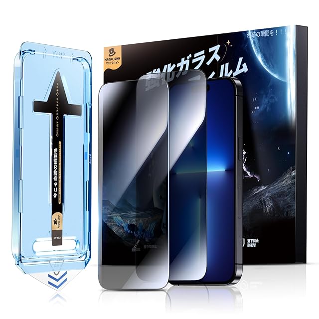 商品名:【覗き見防止】MAGIC JOHN iPhone 14 Plus/iPhone 13 Pro Max 用 ガラスフィルム 2枚セット ガイド枠一体式 貼りやすい 気泡レス 9H硬度 強化ガラス MJPRVZ002-041