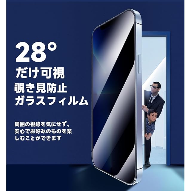 【もう失敗はしない】本製品はiPhone13 Pro Max/14 Plusに対応するプライバシーフィルム2枚セットです。百万以上の欧米ユーザーのフィドバックを集めて日々改善したガイド枠は、3歩だけで保護フィルムを貼り付けます。そのうえ、自動ホコリ取りデザインだけでなく、ガイド枠のスロープデザインで、空気を順序に取り除くことができて、初心者でも気泡レスのまま綺麗に貼れます。