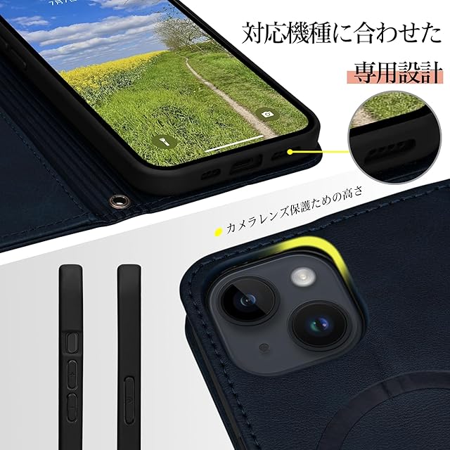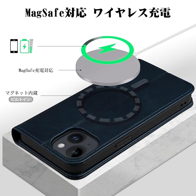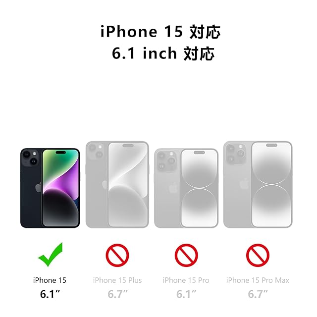 機種対応:6.1インチ;iPhone 15 用 手帳型 ケースに対応。シンプルですっきりとしたシルエットに仕上げました。ご注意:Magsafe対応充電をする際は、位置を何度か調整して試してみてください。