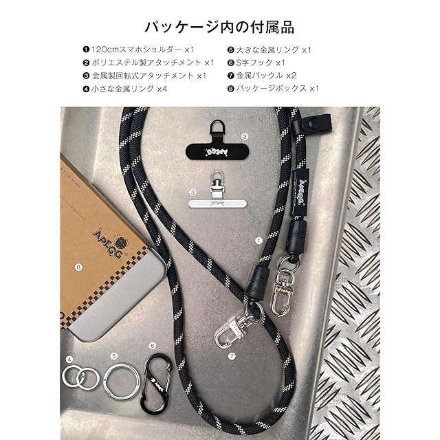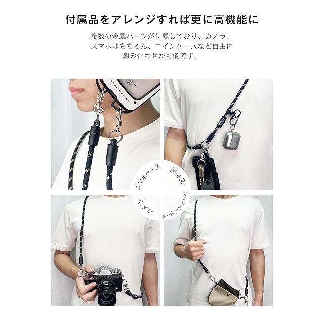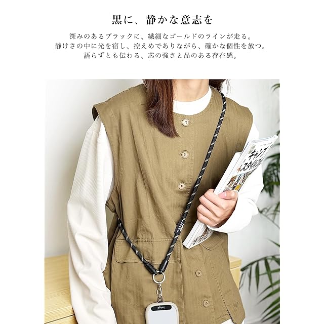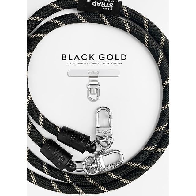 [VPEGGGP] APEGG スマホショルダー 120cm スマホストラップ 携帯ストラップ ショルダー 肩掛け 首掛け 斜めがけ iPhone 全機種対応 アウトドア ネックストラップ ストラップホルダー ストラップ 8mm_Black Gold | TREND DESIGN 家電専門店
