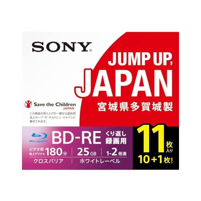 商品名:ソニー 日本製 ブルーレイディスク BD-RE 25GB (1枚あたり地デジ約3時間) 繰り返し録画用 11枚入り 2倍速ダビング対応 ケース付属 11BNE1VSPS2