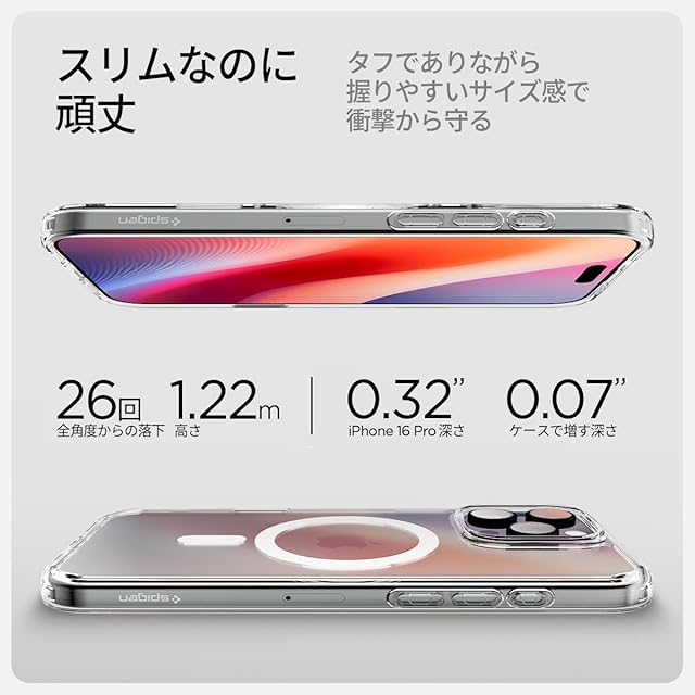 商品名:Spigen 【カメラコントロールカバー付き】iPhone 16 Pro ケース MagSafe対応 クリア ボタン保護 埃防止 ストラップホール 米軍MIL規格 ウルトラ・ハイブリッドT・マグフィット ACS08512 (ホワイト)