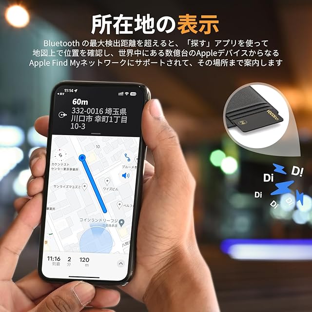 【近くを探す & Appleネットワーク追跡】:最大 200フィート/60 m の Bluetooth 範囲 (80-100 dB の呼び出し音)、超長距離追跡。 「探す」アプリまたは Siri を使用して、トラッカーが範囲内にあるときに着信音を鳴らすことができます。 また、トラッカーが範囲外にある場合でも、Find My ネットワーク上の何億もの Apple デバイスでトラッカーを見つけることができます。