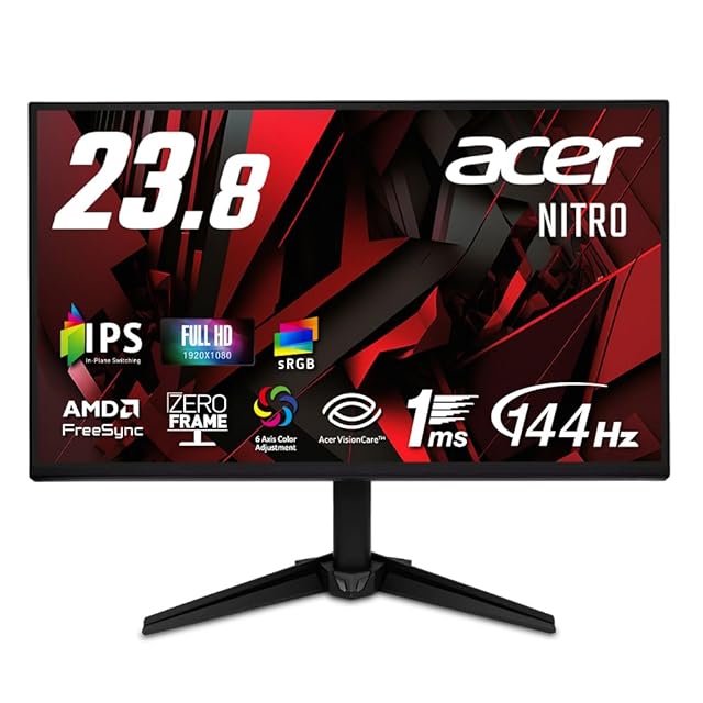 Acer 23.8インチ フルHD 144Hz 1ms(VRB) IPS 非光沢 sRGB 99% AMD FreeSync ブラックブースト VRB対応 ブルーライト低減 HDMI 1.4 DisplayPort v1.2 スピーカー・ヘッドホン端子 Acer Display Widget 6軸カラー調整 VESAマウント対応 Nitro ゲーミングモニター QG241YP6bmipx | TREND DESIGN 家電専門店