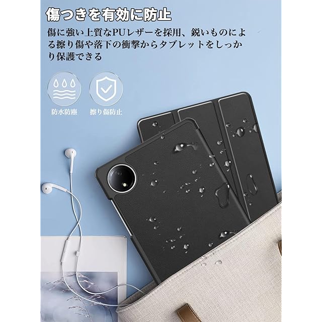 【上質PU素材採用】カバー表面は手触りが良く高級感のあふれる耐久性に優れた高級PUレザーで、バックケースは耐衝撃性の高く頑丈なTPU+PC素材を採用しており、裏地材質は液晶表面に優しいマイクロファイバーの仕上がりで、タブレット本体をやわらかく包み込みながら、不意による落下の衝撃から緩和できて、タブレットに最高の保護力を提供してくれます。
