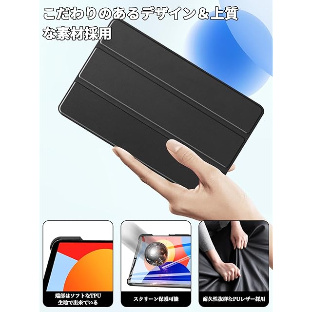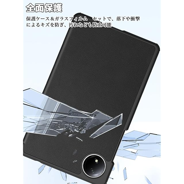For Redmi Pad SE 8.7インチ ケース フィルム セット Redmi Pad SE 8.7 用 保護ケース ガラスフィルム 軽量 保護カバー 角度調整 上質PU製 汚れ防止 全方位保護 耐衝撃 【ブラック】+保護フィルム1枚 | TREND DESIGN 家電専門店