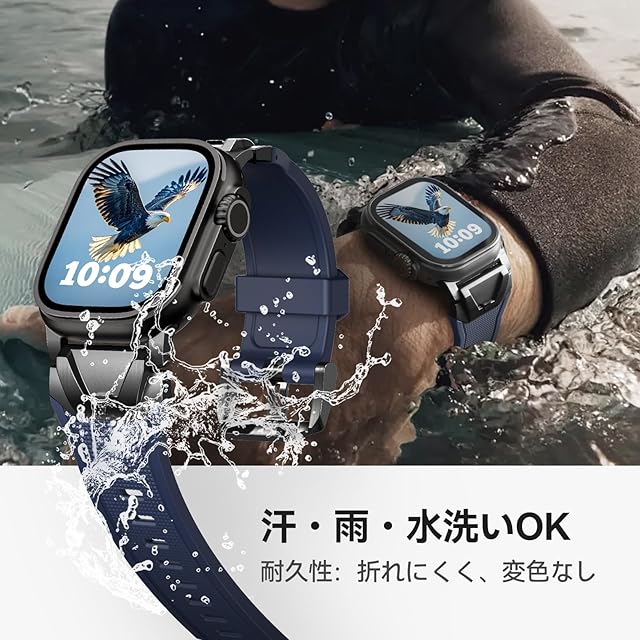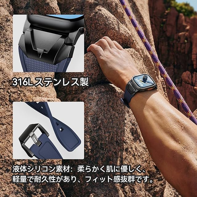【対応機種】本製品「アップルウォッチ ステンレス+液态硅胶(リキッドシリコーン)バンド」は、コンパチブルApple Watch ウルトラ2/1 およびSeries 10/9/8/7/6/5/4/SE2/SE/6/5/4/3/2/1に対応しており。対応する手首サイズは135mmから220mmです。ご注意:購入前に、Watchのモデルとサイズを確認してください。